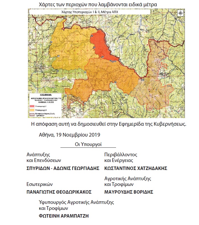 Συνοπτικά, στην ΚΥΑ, που συνυπογράφουν οι Υπουργοί Ανάπτυξης & Επενδύσεων, κ. Άδωνις Γεωργιάδης, Περιβάλλοντος & Ενέργειας, κ. Κωστής Χατζηδάκης, Εσωτερικών, κ. Παναγιώτης Θεοδωρικάκος, Αγροτικής Ανάπτυξης & Τροφίμων, κ. Μάκης Βορίδης και η Υφυπουργός Αγροτικής Ανάπτυξης & Τροφίμων, κ. Φωτεινή Αραμπατζή, προβλέπονται τα εξής μέτρα: